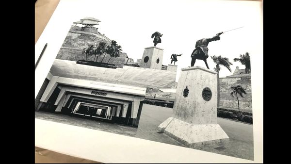 The statues are of Blas de Lezo, hero of the defense of Cartagena against the British in 1741. Admiral Blas de Lezo, who had a peg leg, peg arm, and eye patch, is often considered the model for the image of the pirate in modern pop culture. After this victory, the Castillo San Felipe Fortress (pictured behind de Lezo) was gradually expanded to encompass the entire hill including an extensive network of tunnels. As a result Cartagena was not attacked again during the colonial era and became a colonial center of power and wealth.